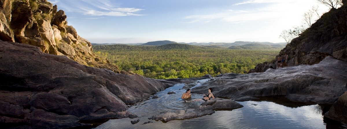From the top of the waterfall, you can enjoy spectacular views out across the south of Kakadu National Park while cooling off in the refreshing waters of the pools. At the top, you can check out the lookout walk, which takes you past pretty rock pools and exposes you to panoramas of the southern hills and ridges.