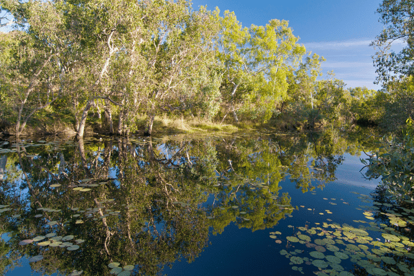 Rainwater continues to restore the billabong from rain and nearby rivers. The area stays fresh and supports a copiousness amount of wildlife.