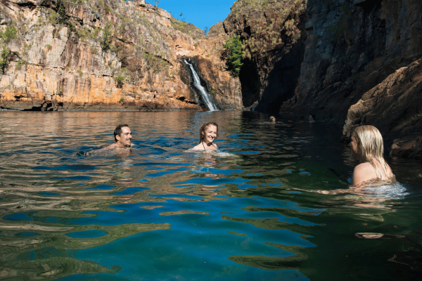 Remember to always prioritize crocodile safety and keep an eye out for signs indicating if swimming is safe. Many pools and waterfalls are closed to the public during the wet season due to unsafe currents and flooding. Always check for warnings and closures before planning your trip. Kakadu National Park boasts some of the most spectacular and unique swimming holes globally—don’t miss your chance to take a dip during your visit to the NT!